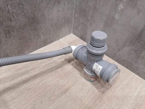 Один из вариантов монтажа под ванной выглядит примерно так же — клапан ставится в доступное место, где он может свободно открываться и втягивать воздух.