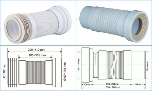 Идеальный вариант — вообще отказаться от гофры и выполнить соединение унитаза с канализацией через подобранные по углу пластиковые колена.