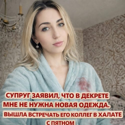 Мой вид стал живым воплощением фразы «женщина, на которую забили». Коллеги мужа видели не просто «уставшую мать», они видели отношение их сотрудника к жене. Успешный мужчина, а жена встречает гостей в рваном халате.