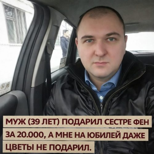 — Вадим, месяц назад у меня был юбилей. Ты не подарил мне даже открытку, сказав, что у нас нет денег. Сегодня ты даришь сестре вещь стоимостью в половину моей зарплаты. Как ты это объяснишь?