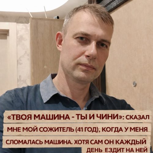 — Вадим, эвакуатор стоит несколько тысяч. До зарплаты три дня, на карте пусто. Скинь деньги, помоги с сервисом. Ты же мужчина! Ездишь на ней больше меня!