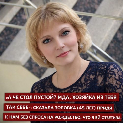 — А чего стол пустой? — протянула она с упрёком. — Где холодец? Где утка с яблоками? Салаты где? Рождество же. Люди столы ломят, а у вас — пустота.