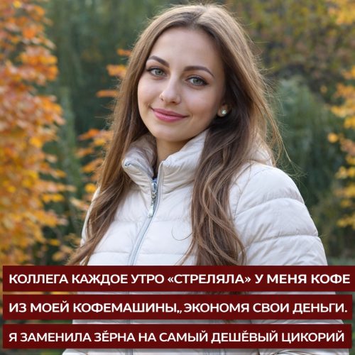 Шоколадки, разумеется, не было. Зато я регулярно наблюдала, как она заказывает суши на обед и хвастается новыми туфлями. Деньги у неё были — просто не для кофе.