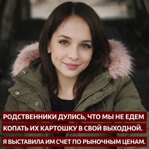 «Тётя Люба, мы вас очень любим и уважаем ваш труд. Но в эти выходные приехать не сможем. Я посчитала наш семейный бюджет: поездка с учётом бензина, износа машины и последующего лечения спины (у Саши грыжа, ты знаешь) обходится нам минимум в 10 тысяч. Ради двух мешков картошки это экономически невыгодно.