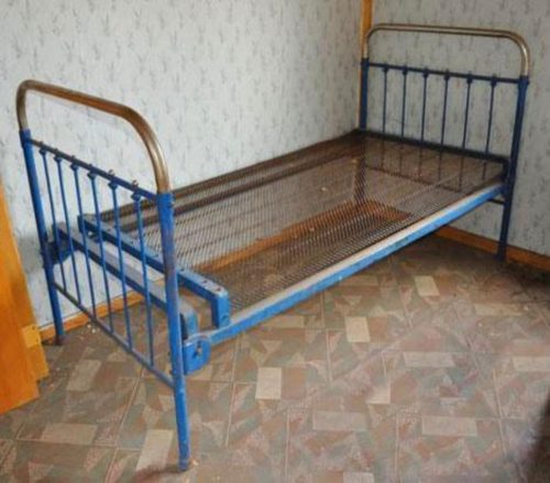 Во-первых, коммуналки, общежития и тесные комнаты. Нужна была мебель, которую можно занести по узкому коридору, собрать в небольшой комнате, а при необходимости разобрать и увезти. Железная кровать с сеткой подходила идеально: простая, повторяемая, без излишних требований.