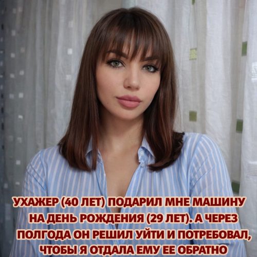 — Лена, давай рассуждать по-взрослому. Машина стоит немалых денег. Я дарил её своей женщине, своей будущей жене. А раз мы расстаёмся, твой статус меняется. Зачем тебе такой дорогой автомобиль? Ты устанешь его обслуживать. Да и вообще, это несправедливо. Перепиши машину на меня — и разойдёмся по-хорошему.