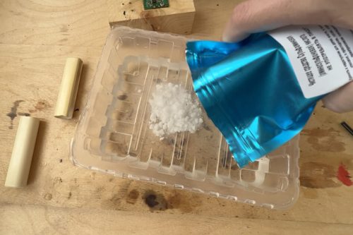 Сначала наливаем в подходящую ёмкость воду комнатной температуры и добавляем туда кислоту. Я использовал примерно 20 граммов на 250 мл воды.