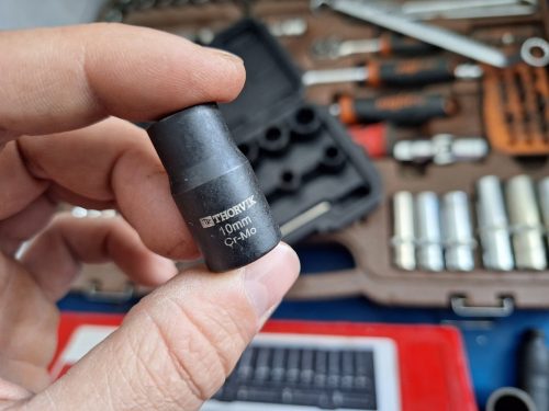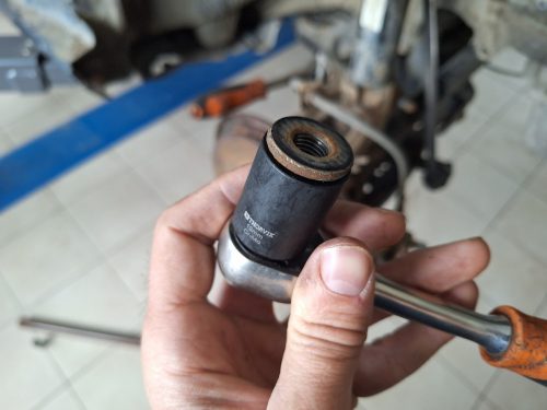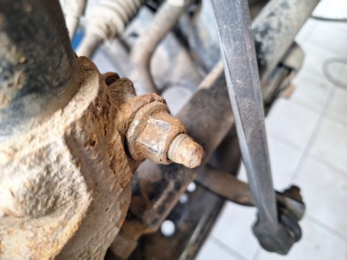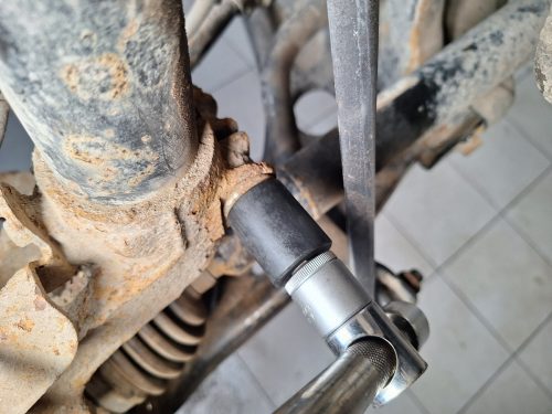 Покажу на примере одной проблемной детали — гайки крепления переднего амортизатора — как такие головки справляются со своей задачей.