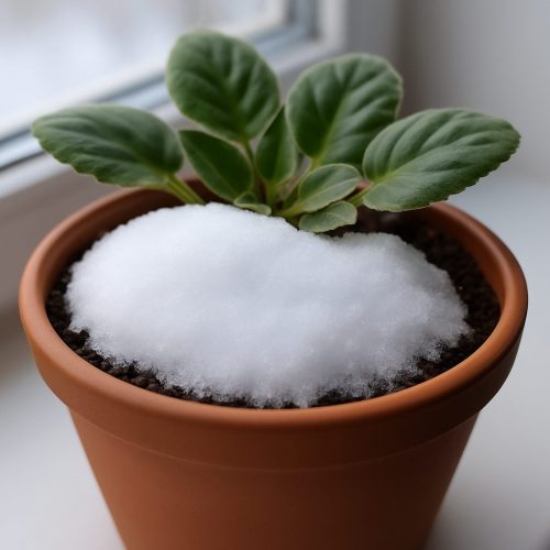 - Фиалки (сенполии) — снег промывает верхний слой почвы, делает листья упругими.