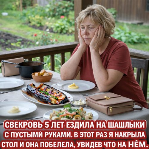 Галина Петровна стояла у мангала и рассматривала шампуры так, будто перед ней лежало что-то совершенно несъедобное. В руках — неизменная большая бежевая сумка с золотистой застёжкой. Она появлялась с ней каждый раз. И каждый раз содержимое было одинаковым.