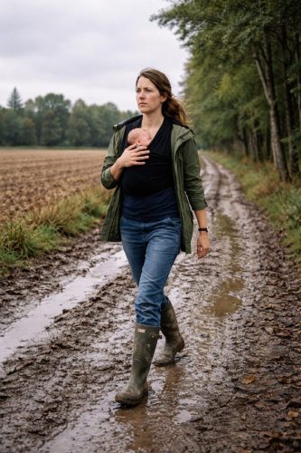 Варя вышла, прижала сына к груди и пошла по краю огромной лужи. Ноги вязли в грязи, обувь промокла, один ботинок остался в грязи — пришлось идти дальше так. Когда добралась до деревни, уже стемнело, ноги онемели от холода.