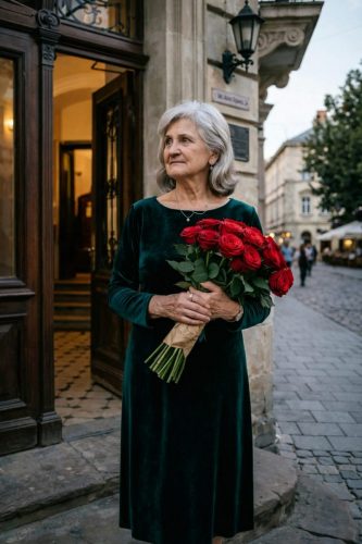 Анна Михайловна стояла у входа, неловко прижимая к груди букет белых роз. На ней было её лучшее платье — тёмно-синее, бархатное, которое она берегла для особых случаев. Но, несмотря на это, она чувствовала себя здесь чужой, лишней среди этого блеска и показной роскоши.