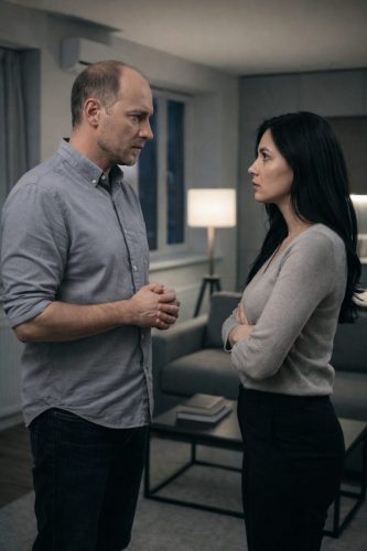 Когда они приехали домой с вещами, на пороге их встретила Настя — с холодным и разочарованным взглядом. Вадим пытался объяснить своё решение, но она даже не захотела его слушать.