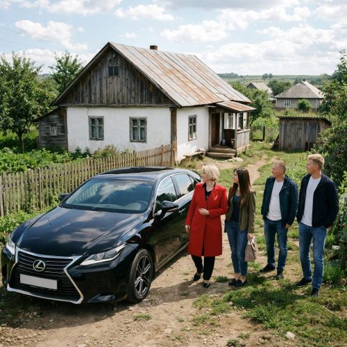 Во двор деревенского дома неожиданно въехал дорогой автомобиль. Из него, с явным интересом рассматривая тихие и живописные окрестности, вышли дальние родственники Тони.